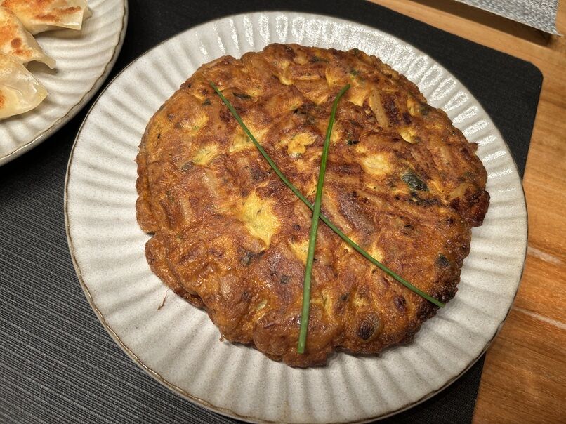 そこにパスタの残りを入れてフライパンで焼くだけ。