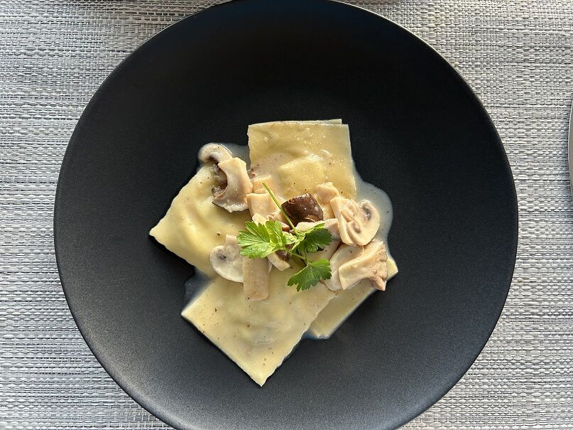 トリュフ風味リゾット、かぼちゃのオーブン焼き、青梗菜と一緒に。