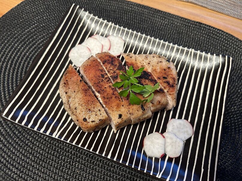 一度茹でて塩抜きしてから表面を軽くソテーしました。