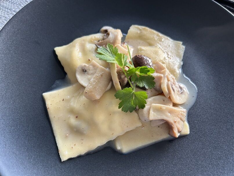 リゾットには玉ねぎとマッシュルームを。