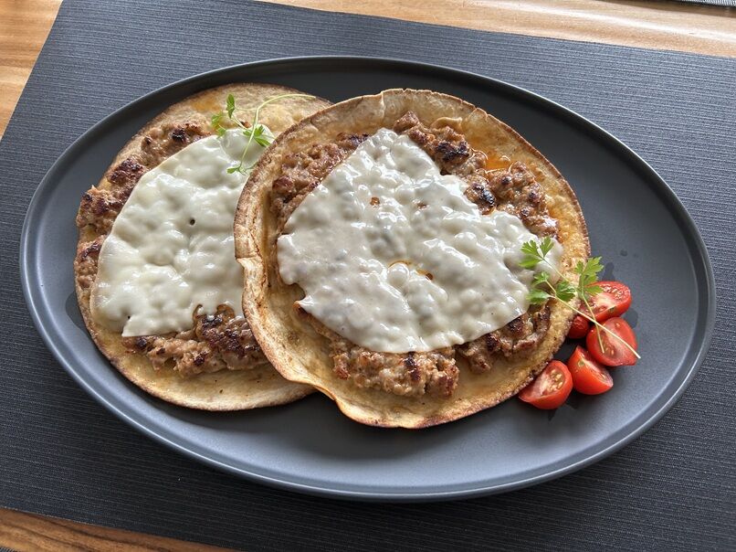 具の他に、好みでチーズ、クリームチーズ、コリアンダーなどを乗せ、