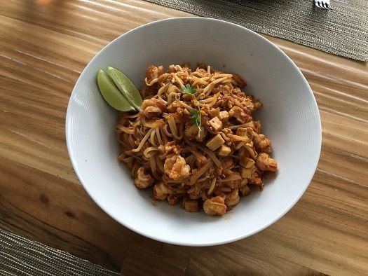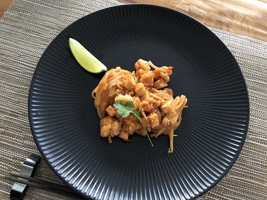 パッタイにはエビ、自作の厚揚げ、もやし、ラムソン(ニラの代わりに)、卵を入れました。