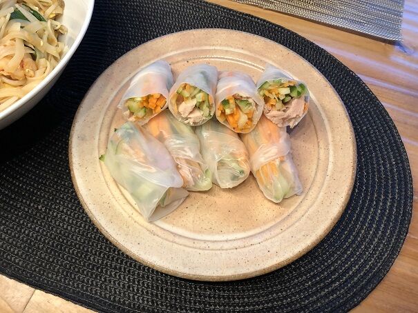 生春巻きにはきゅうり、人参、そしてツナ缶を。