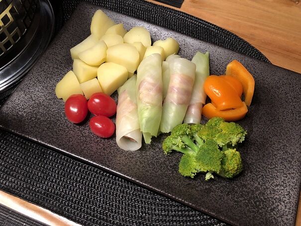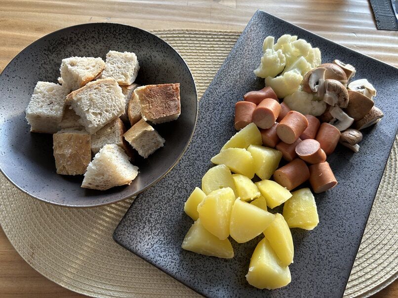 パンの他、じゃがいも、ウインナー、カリフラワー、マッシュルームを用意しました。