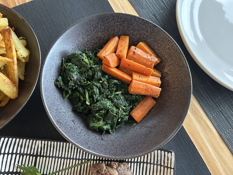 ほうれん草のソテーも味付けは塩、胡椒のみ。