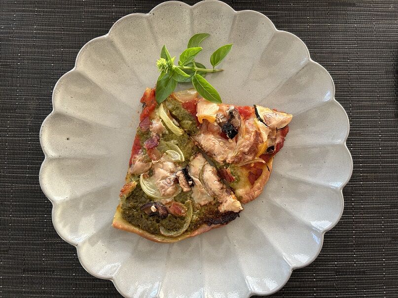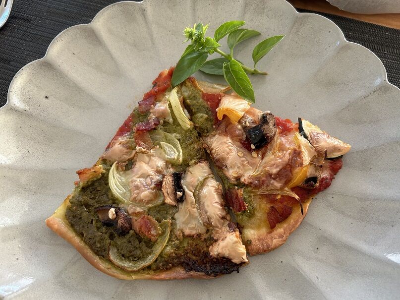 フィリングはリコッタチーズ+ソテーしたブラウンマッシュルームとポロねぎ、