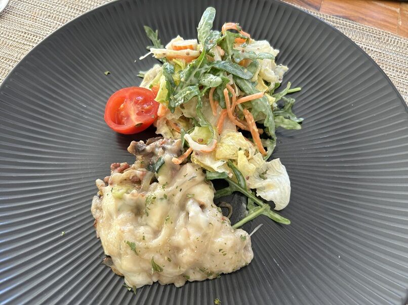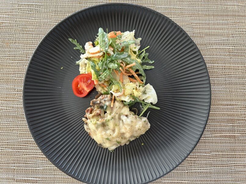 全く見えませんが、間に薄くスライスした茄子のソテーが挟まっています(笑)