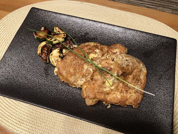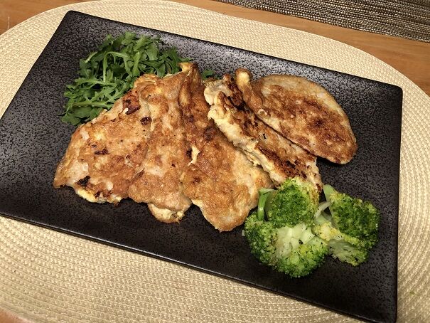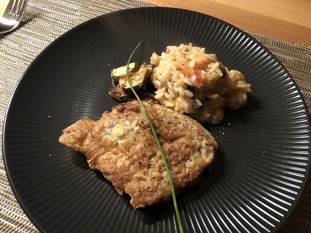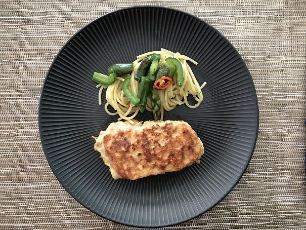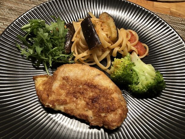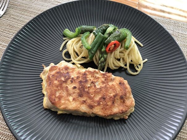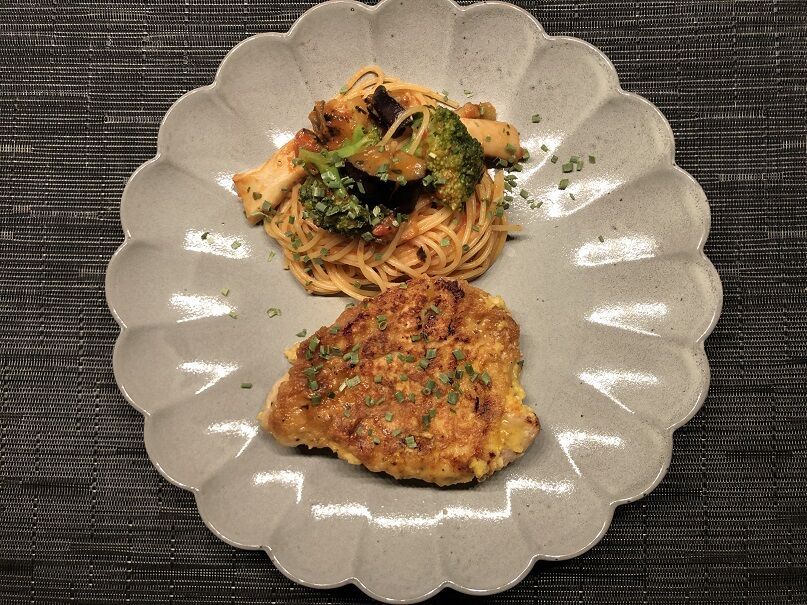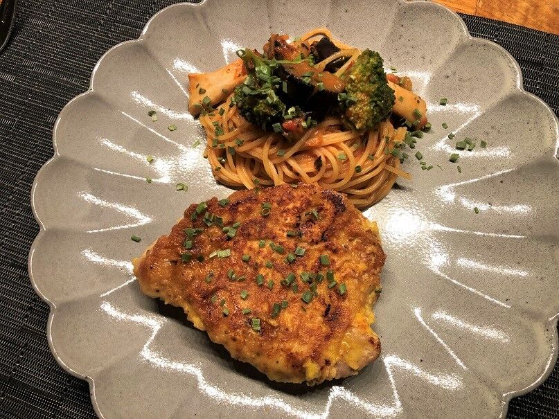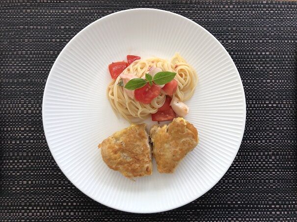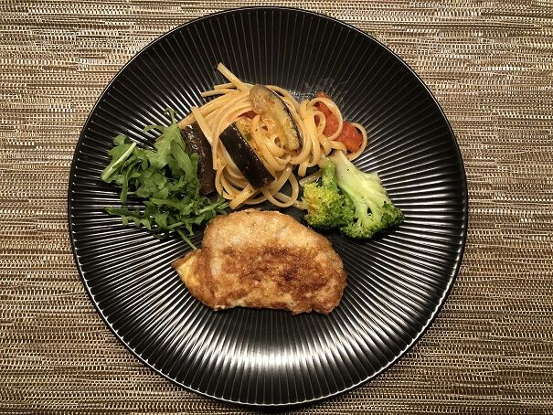 スパゲッティーニの味がかなり濃いめなので、ポークピカタは少し薄味に。