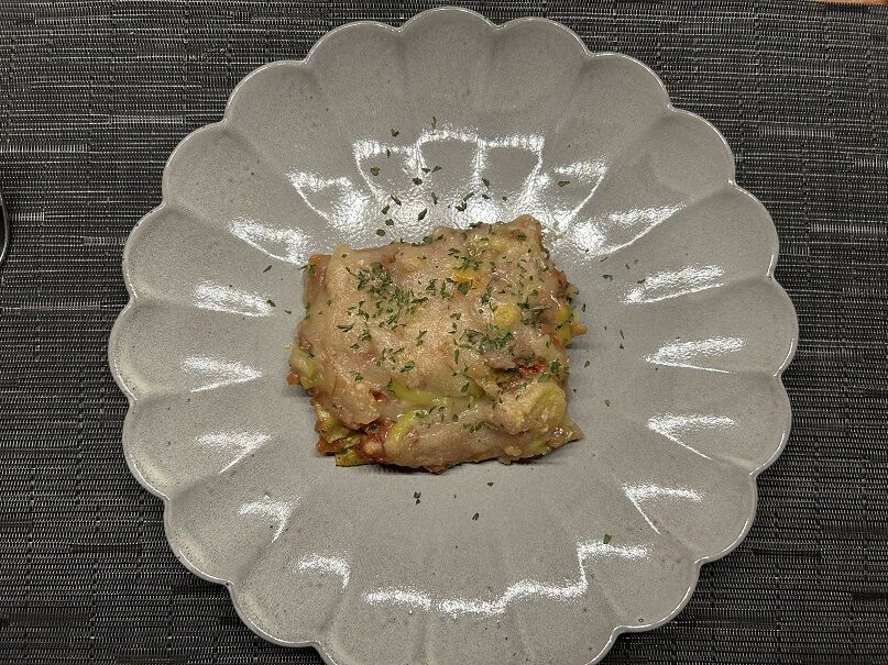全く見えませんが、間に薄くスライスした茄子のソテーが挟まっています(笑)