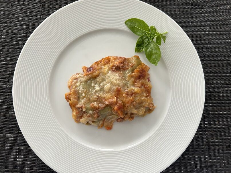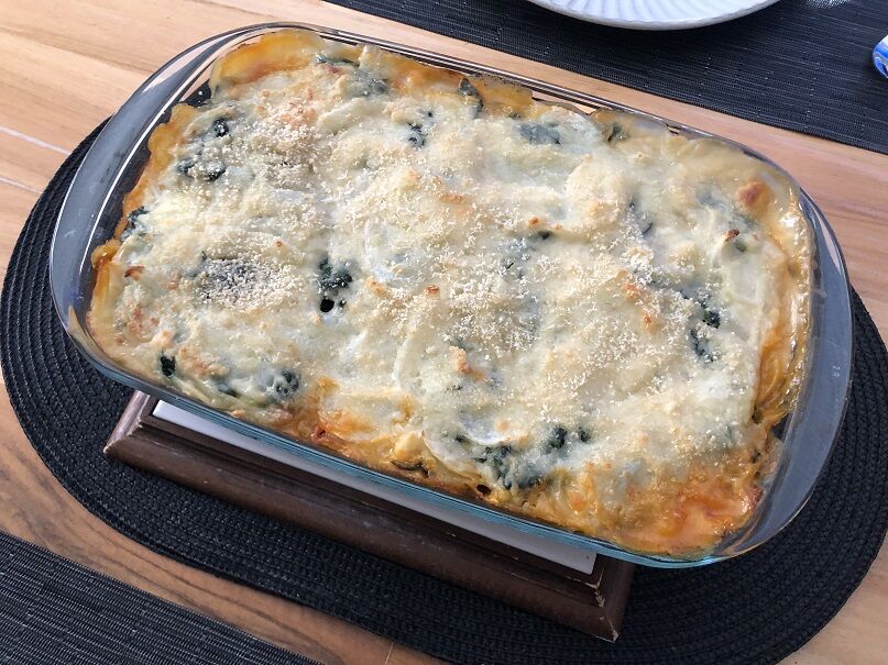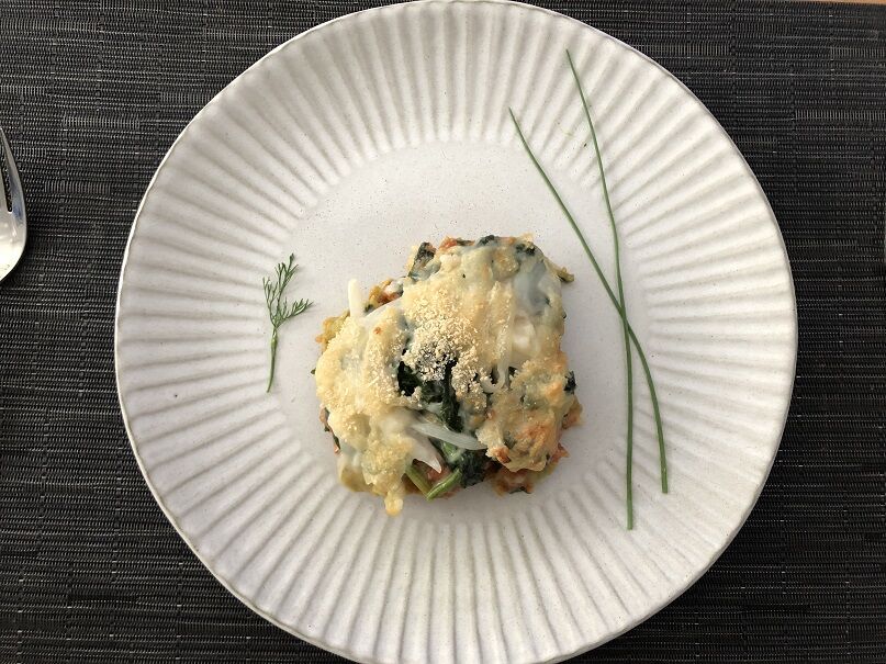 ベシャメルソースには玉ねぎとカリフラワーを入れて、