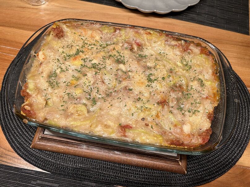 午後、ボロネーゼを作っておいたので、それを活用しての夕食です。