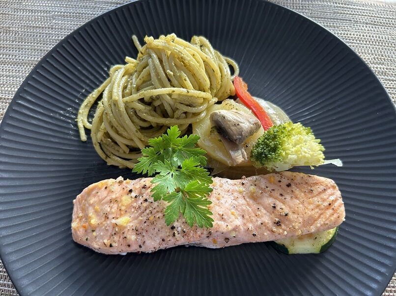 おっと、ズッキーニがサーモンの下敷きに(笑)
