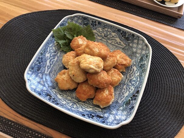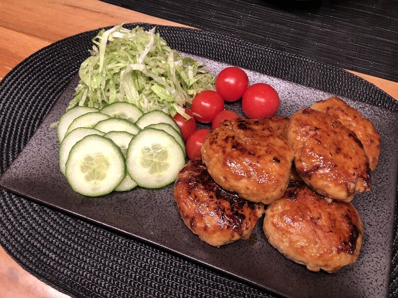 鶏ひき肉を使ったハンバーグは照り焼き風に。