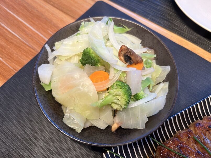 野菜を煮たところで取り分けて、彼の分はすまし汁仕立てにしました。