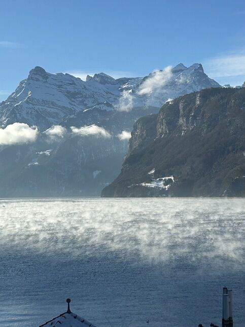 毎日見ている湖ですが、とてもとても幻想的な風景でした。