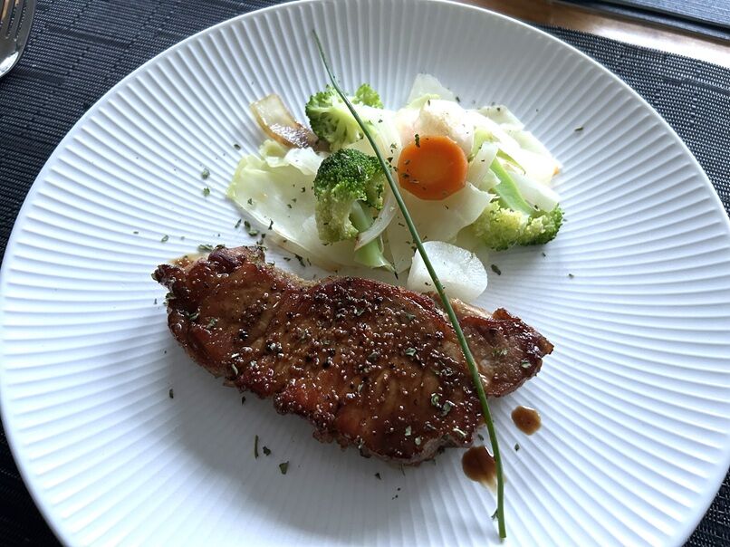 ランチは、両面がサッと焼かれた牛フィレ肉が熱々の石の上に乗せられてサーブ。