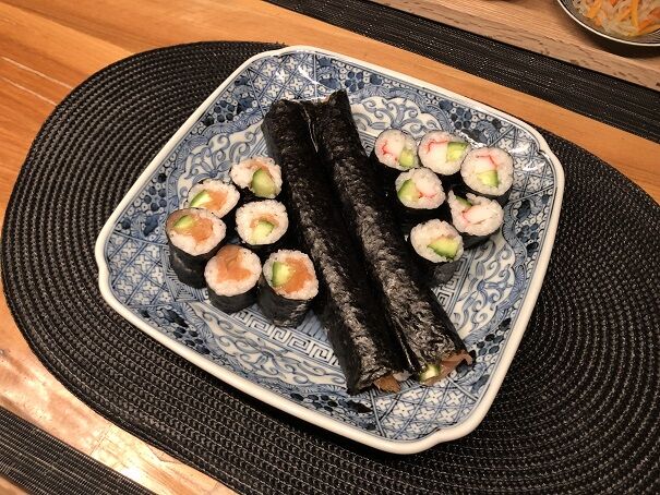 細巻きはいつも通りあまり上手に巻けませんでしたが、味は良かったです(笑)