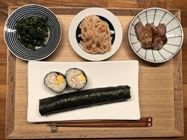 他の方の動画も拝見して細巻きの予習をしたのに、やっぱり今日も上手く巻けず(笑)