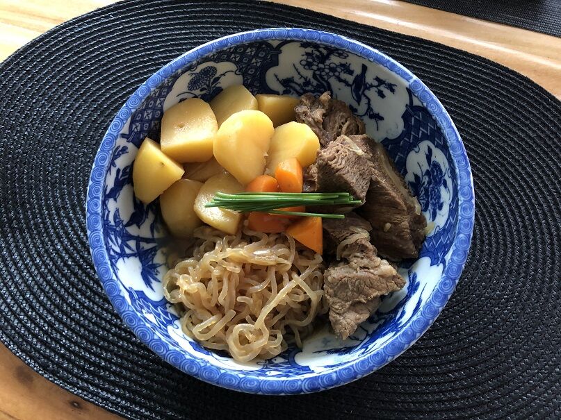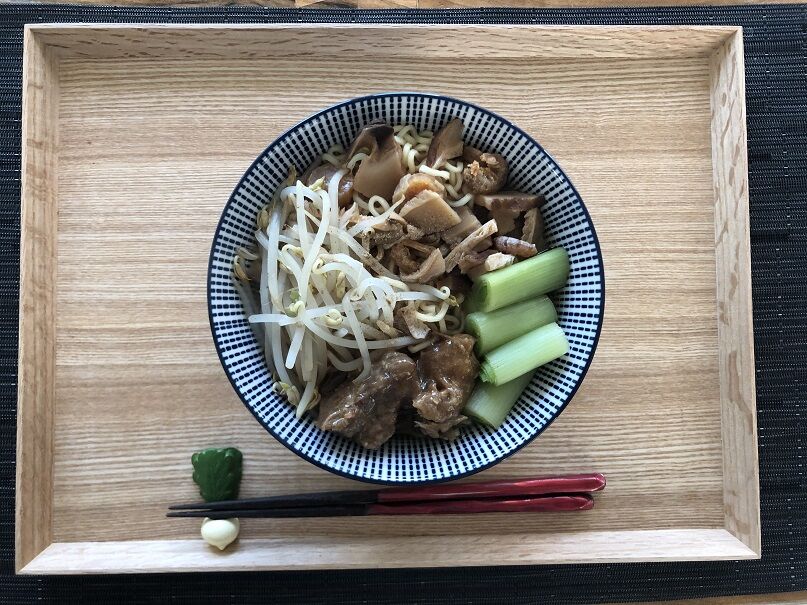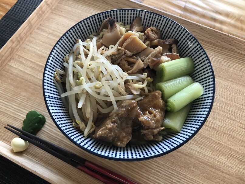 麺はスイスの日本食材屋さんで購入した都一のノンフライ麺。