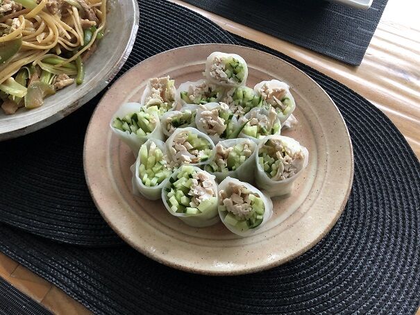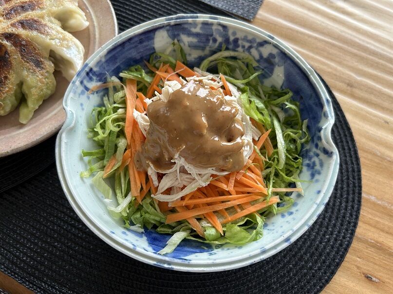 棒棒鶏風ですが、かけているのはキッコーマンのごまドレッシング(笑)