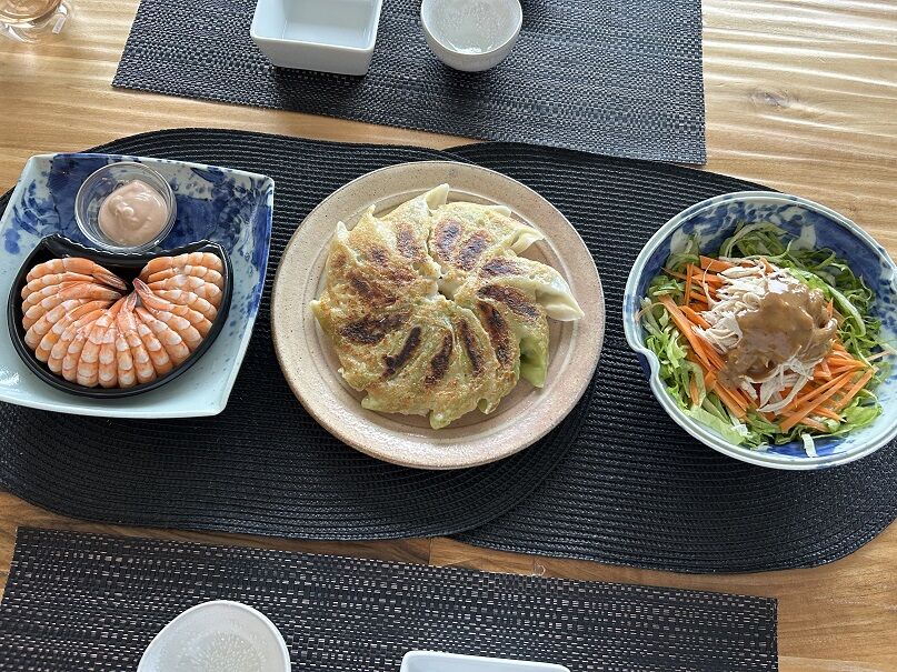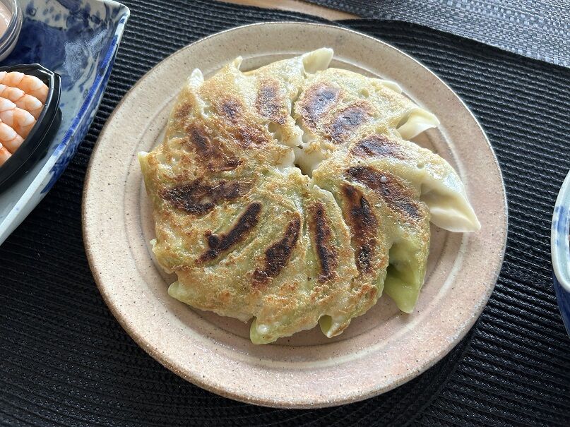 浜松餃子は昨日都会のお魚屋さんで買い求めたChicken、Vegetableの2種。