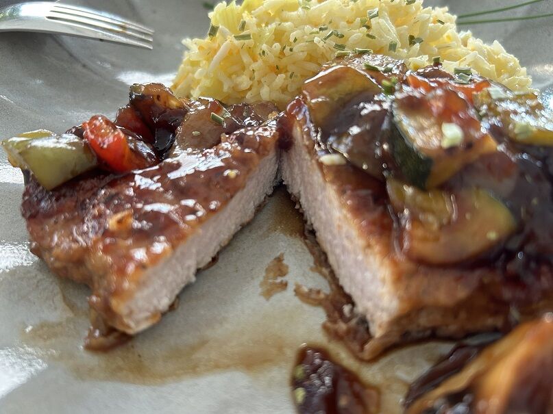全く見えていませんが、ソースの下にはちゃんとポークステーキが存在しております(笑)