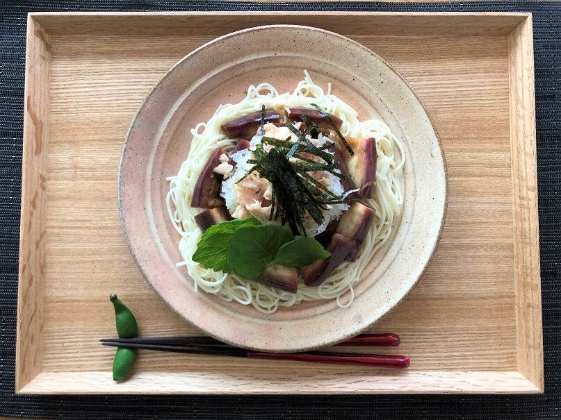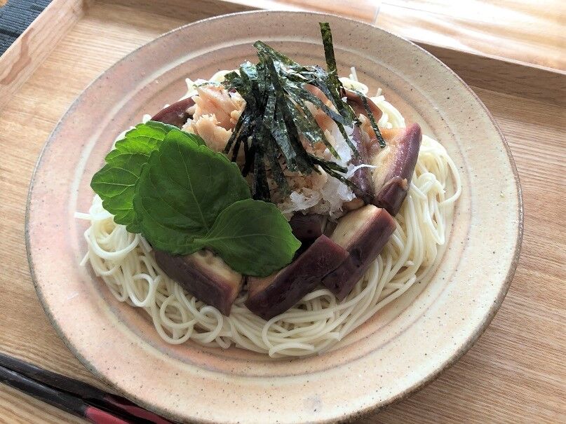 ■ 蒸し茄子の柚子胡椒風味ぽん酢和え