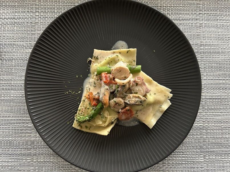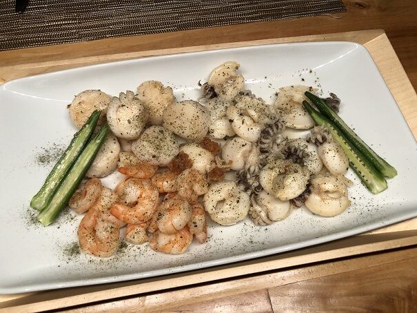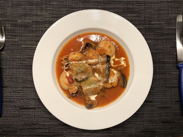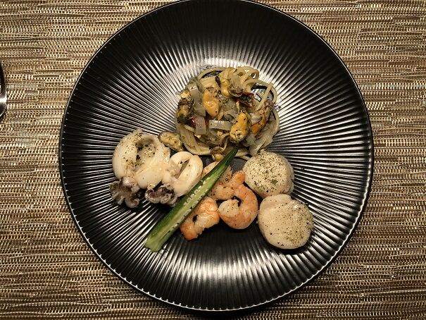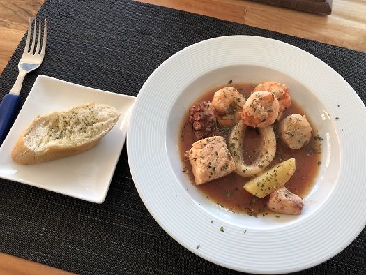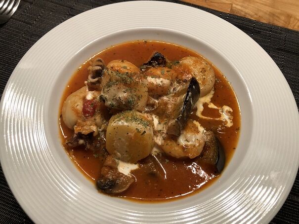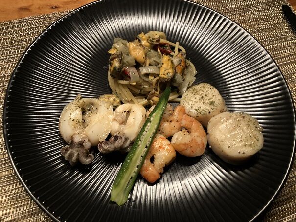 スイスで買えるシーフードミックス(イカ、タコ、ムール貝、エビ)を使いました。
